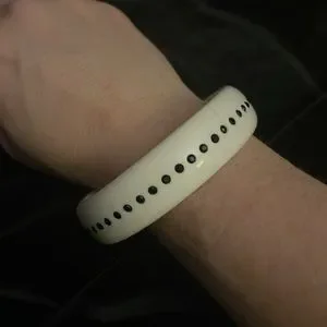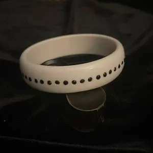 Vtg 80s Creamy Plastic Bangle with Black Gems