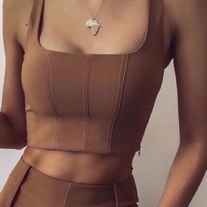 Tiger Mist Tan Light Brown Syre Corset Cropped Sleeveless Top Size XS