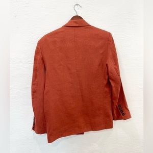 Condition is new without tags. Easy fit. V neck with notched lapel. Center front button closure. Patch front pockets. Long sleeves with buttoned cuffs.