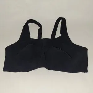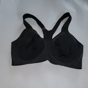 5. Moving Comfort black bra with triple hook clasp in back and underwire 36D - some wear