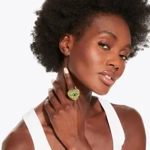 The Heart Evil Eye Stone Ring features a gold tone band with green stone. There is a crystal evil eye motif sat on the top.