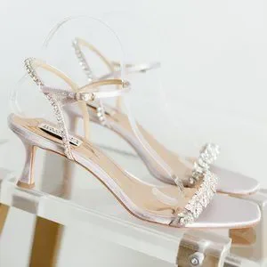 A kitten heel to honor your inner lioness. Crystals ensure you shine, and this look elevates you with height. Consider this a little lift, to help you feel fierce.