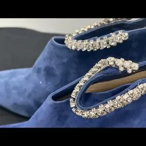 Authentic Jimmy Choo Women's Pop Blue Suede Leather Blaize 100 Boots Shoes ~38.5
