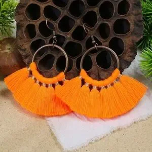 Beautiful boho neon orange tassel drop earrings. Simple design with a big impact with the bright fringe