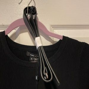Brand new with tags Karen Millen screw neck knitted long sleeve mini skater dress, size medium. From website: The perfect style solution for what to wear moments, this sleek knitted skater dress offers instant refinement. It features a feminine flared skirt, long sleeves and a contrasting slimline waist belt to gently define your curves. 55% polyamode, 45% viscose. Machine wash with similar colors. Length is approximately 38”. Smoke and pet free home.