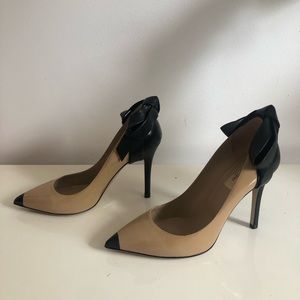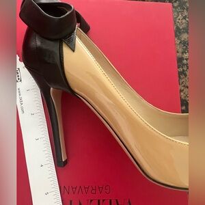 Authentic Valentino Garavani Leather Black Bow Heel Pumps. Size 37 1/2