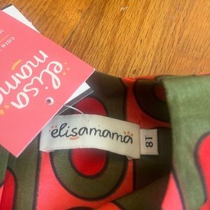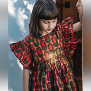 Elisamama size 8 Years Nigerian Green Red Print Ruffle Sleeve NWT Dress African