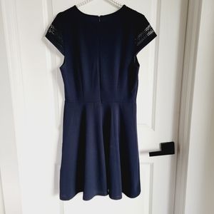 NWOT H&M Navy Blue Lace Eyelet Cap Sleeve Knee-Length Casual Dress Sz M