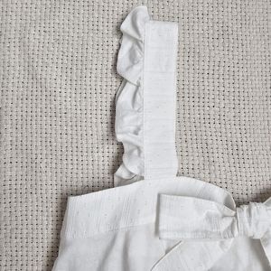 front bow detail | ruffled eyelet adjustable straps | cinched back | nwt