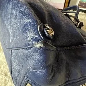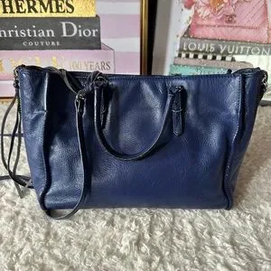100% authentic vintage Balenciaga 2 way zip around tote in navy leather. Both zippers on the zip of the bag are functional and zippy. Minor sign of wear to the front of the bag as photographed. Mirror is included. Corners have some wear, please see photographs. Interior is navy and clean. Strap is authentic, original and removable!