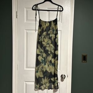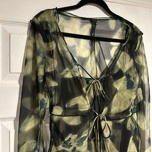 style: 2 piece set, see-through top, dress can be worn as a skirt or a dress with tie straps, midi length