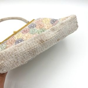Bridal. Wedding. Winter. Special Occasion. Antiqued. MCM. Mid Century. Seed Bead. Cocktail. Holiday. Holidays. Retro. Grannycore.Collectible. NYE. New Year's Eve. 1950's. Fifites. 50's. Eclectic. Statement piece. Glam. Elegant. Metallic. Party. Handbag. Feminine. Spring. Easter. Tea Party. Garden Party. Cottagecore. Girly. Feminine. Floral. Flower. Pastel.