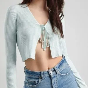#garage #croptop #ribbed #cardigan #tiefront