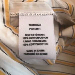 Beautiful Derek Lam Crossover Tie V Neck Top with blouson lined 3/4” Sleeves 19.5”! Dropped shoulder design. Adjustable tie waist with a hidden zipper near the tie waist. Lovely marigold/ white & dark gray striped fabric. Length 20”. Size 10. Quality and 100% cotton. NWT Tags: Summer Party Cruise Vacation Date White Yellow Striped Crop Top RELATED: trendy • trending • sparkly • unique gift • Instagram • minimalist • classic • classy • chic • exquisite • glam • glamorous • gemstones • gems • beautiful