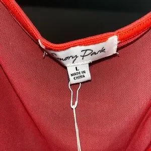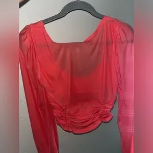 Coral pink/orange ish long sleeve top. Most of it is mesh see through except for the boob area. Never worn