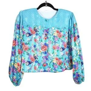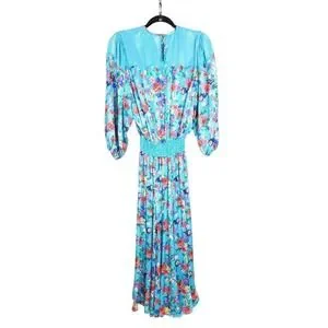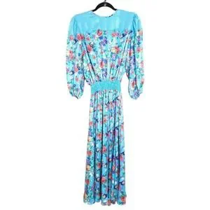Diane Freis Womens Dress Jacket Set Vtg Georgette Blue Polka Dot Floral Maxi 6