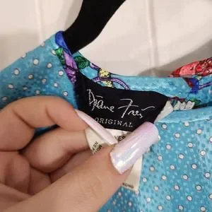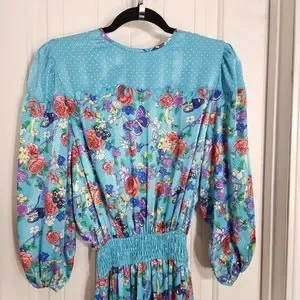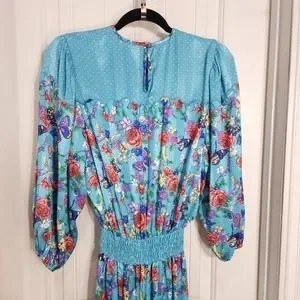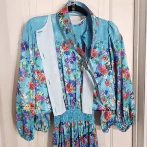 Diane Freis Women's Dress Jacket Set Vintage Georgette Blue Polka Dot Floral Maxi - Comes with dress, jacket, and belt.