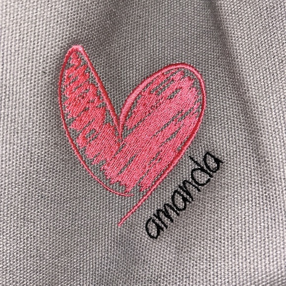 Amazing barely used tote bag with a pink heart and the name Amanda embroidered on it.