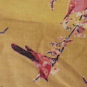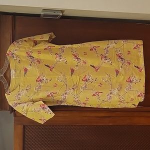 BOMBAY PAISLEY | Green Cotton & Linen Dress with Floral Print and Birds - size M