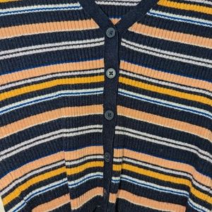 LA Hearts (pacsun) ribbed button down cropped sweater. cute multicolor striped sweater.