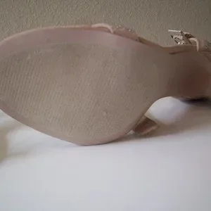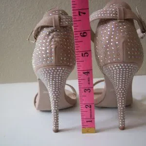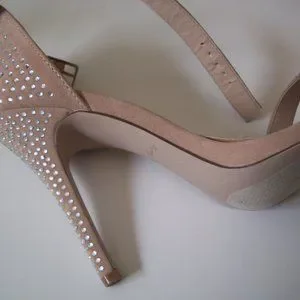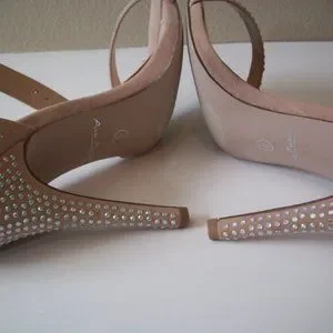 spike heel . some light wear on bottom rhinestone on heel missing . great shape . skinny straps . party fancy . moving and downsizing.. I accept reasonable offers and even some unreasonable
