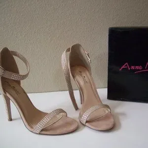 Anne Michelle size 8 tan faux suede rhinestone heels