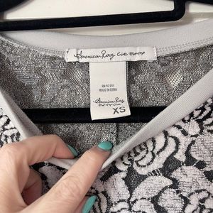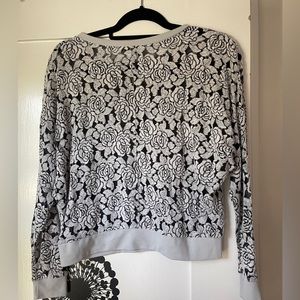 American Rag Cie light grey & black mesh knit floral crewneck sweater, size xs
