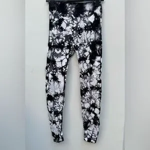 Peach leggings with compression at waist and sides. Size M. Black & white marble