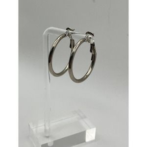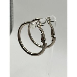 Vintage Large Silver-Tone Hoop 1 1/8 Inch Earrings!