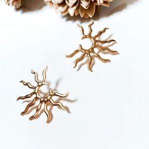 Sun radiant stud earrings in gold tone