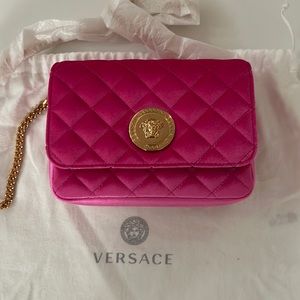 Versace NWOT Hot Pink Velvet MEDUSA Clutch crossbody Handbag 7โx5โ with dust bag