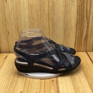 Ecco Sandals Women Size US 6.5 EU 37 Dark Navy Blue with Gray Accent Strap 0662
