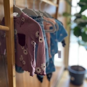 This bundle includes 4 previously loved and 2 new clothing items. Brands in this bundle are Baby Gap (new with tags), Little Co. by Lauren Conrad, Cat & Jack, Larkspur Baby Company, and Old Navy