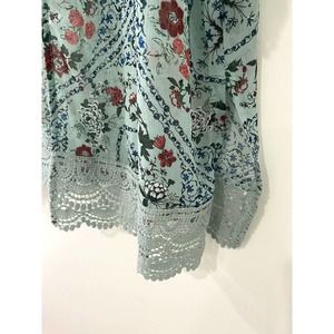 Kimono Women's Size Large Floral Green Lace Trimmed Boho Cottage Core Cardigan