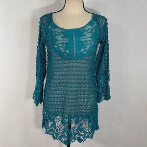 NWOT Umgee Blue Crochet Lace Tunic Top Women's Size Medium