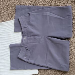 St. John Sport pants. More casual design with 5 pocket and button and zip closure. Gray color. I would describe them as boyfriend fit, with a midrise and slightly wider leg and bottom. Versatile, as they would pair well with a blouse and heels for a dressed up look or sneakers and sweater for a more relaxed casual presentation. Women's size 6 (six). Smoke free and pet free home. Please check out my other items...I'd love to make a discounted bundle for you. Thank you!!