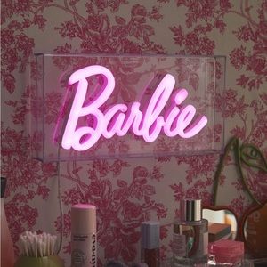Turn your space into Barbie’s dream house with this neon sign. Features the iconic Barbie logo with vibrant white to neon hot pink lighting. Freestanding LED light is backed with durable plastic for easy display. 💕🎀✨