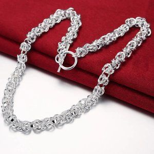 18 Inch Toggle Byzantine Necklace Stamped .925 Solid Sterling Silver 7mm Wide