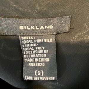 Silkland black and white embroidered and beaded blouse with sheer sleeves and neck tie detail.
