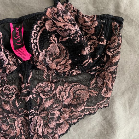 Black and Light Purple/Pink Sexy Scolloped Lace Underwire La Senza Unlined Cups Lingerie Bustier Bra, Pull over style. adjustable bra straps
