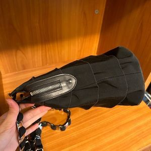 Authentic Salvatore Ferragamo Silver Chain Tote Bag Black