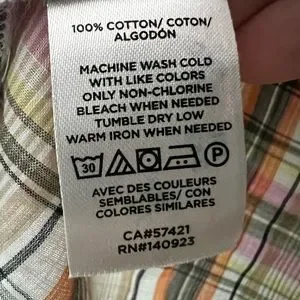 This shirt is brand new with tags attached. It can be worn as long sleeve or short with the sleeve buttons. 100% cotton and very soft.