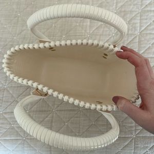 Small mini tote handbag. Cream/off-white colored with gold hardware accents. So adorable and perfect for those few essentials on a night out! Used only once 👜