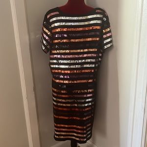 NWT Colleen Lopez Dress. Sequence stripes. Knee length stretchy and fitted. Size 1X