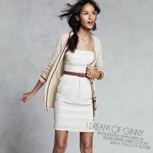 Ginny Rugby dress from J. Crew Factory in size 2. It's a pretty off-white, ivory color and has striped applique textured ribbon all over.