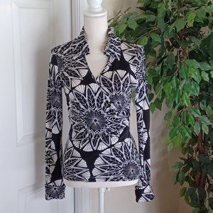 EUC Soft Surroundings Wrap/Surplice Black & White Print Top Size Small
