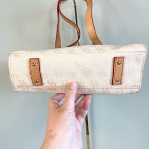 Vintage Dooney & Bourke Shoulder Tote Bag Cream Canvas Signature Logo Shopper