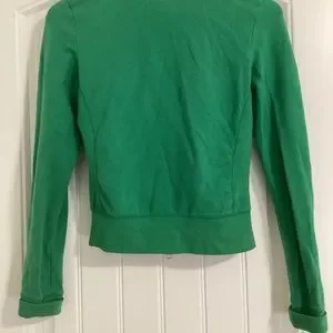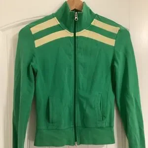 96% Cotton, 4% Spandex. Elevate your wardrobe with this stylish and comfortable American Eagle Outfitters zip-up top. Features a double zipper. Track suit style jacket.
