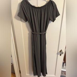 Off Shoulder Split Thigh Belted Dress Dark Grey Size L