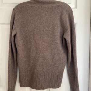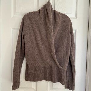 Light brown crossover sweater with ribbed detailing. Made of 100% Cashmere.